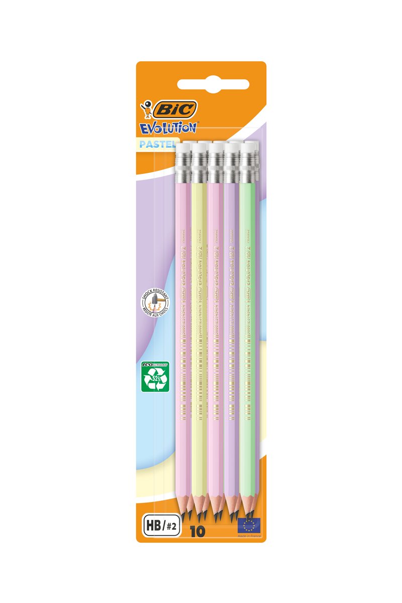 10 crayons graphite mine HB avec bout de gomme.