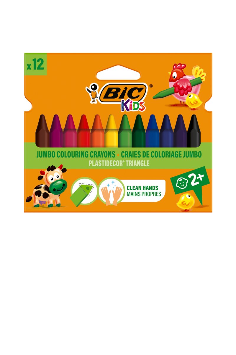 BIC Kids Plastidecor Triangle Craies de Coloriage - Couleurs Assorties, Etui Carton de 12