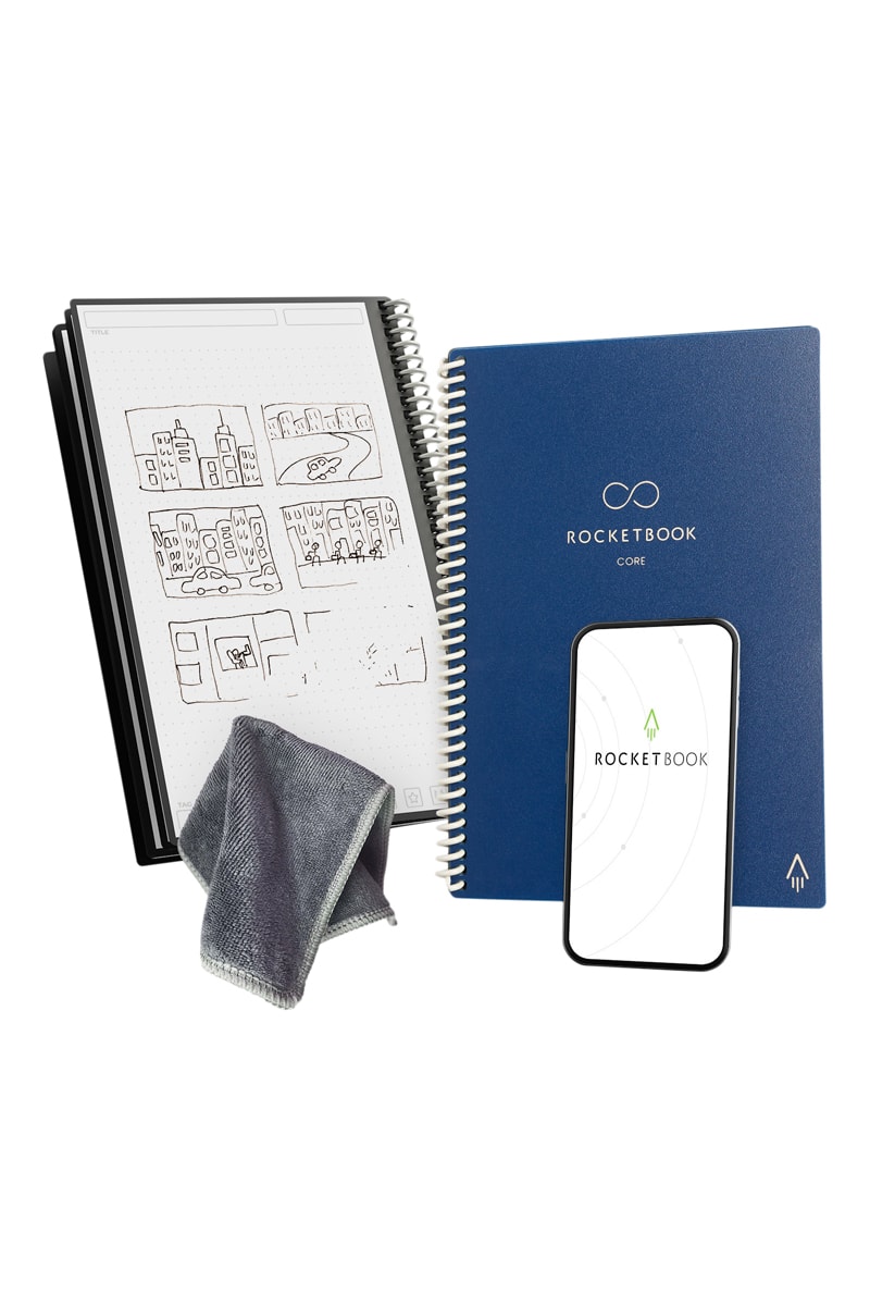 Le carnet de notes pointillé Rocketbook Core est connecté à une application pour enregistrer, organiser et partager facilement vos notes et représentations visuelles.