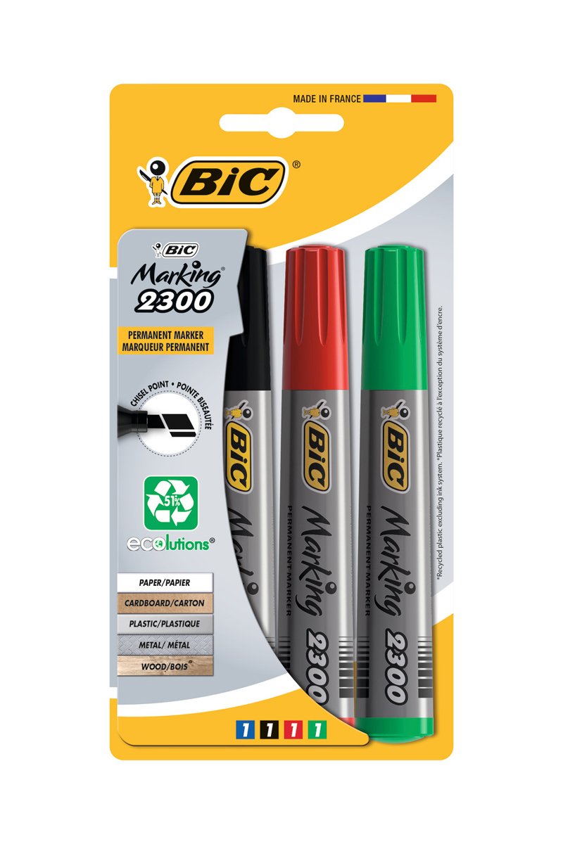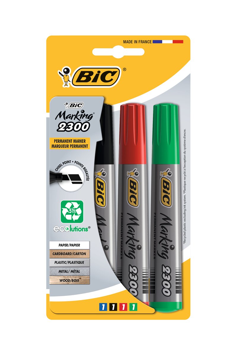 2 x BIC Marking 2300 ECOlutions Marqueurs Permanents à Pointe Moyenne Biseautée - Couleurs Assorties, Blister de 4