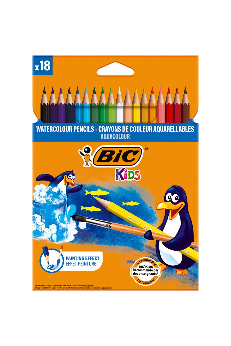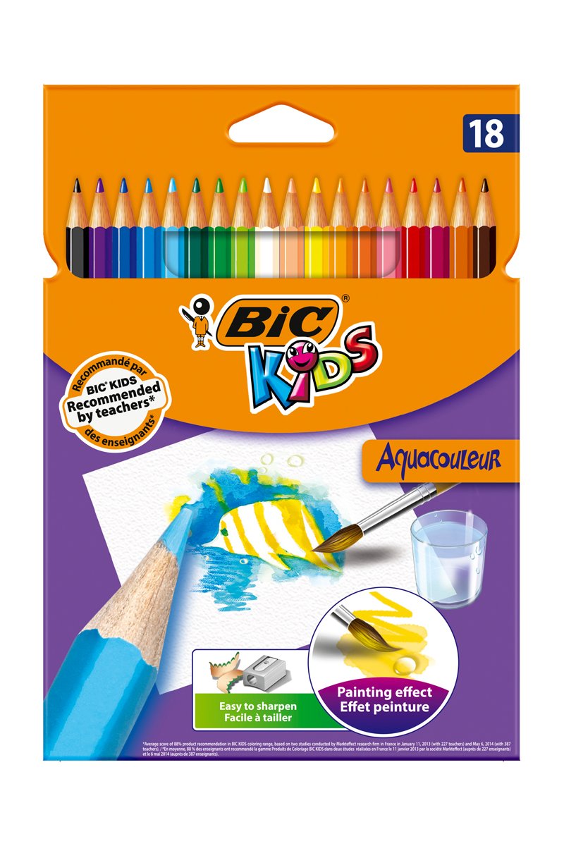 Les crayons de couleur acquarellables BIC Kids Aquacouleur ont une mine trempable dans l'eau, pour donner un effet d'aquarelle aux dessins.
