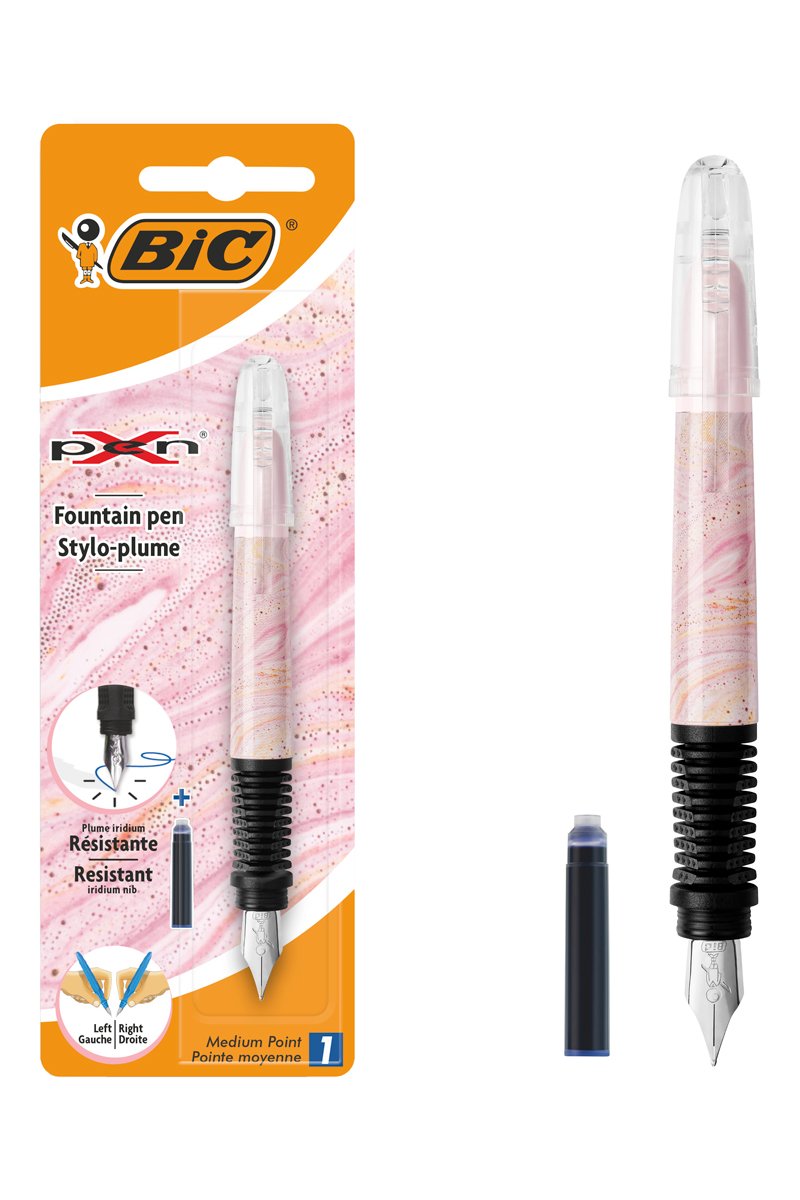 2 x BIC Xpen Stylo-Plume Rechargeable Encre Bleue - Décor Rose, Blister de 1
