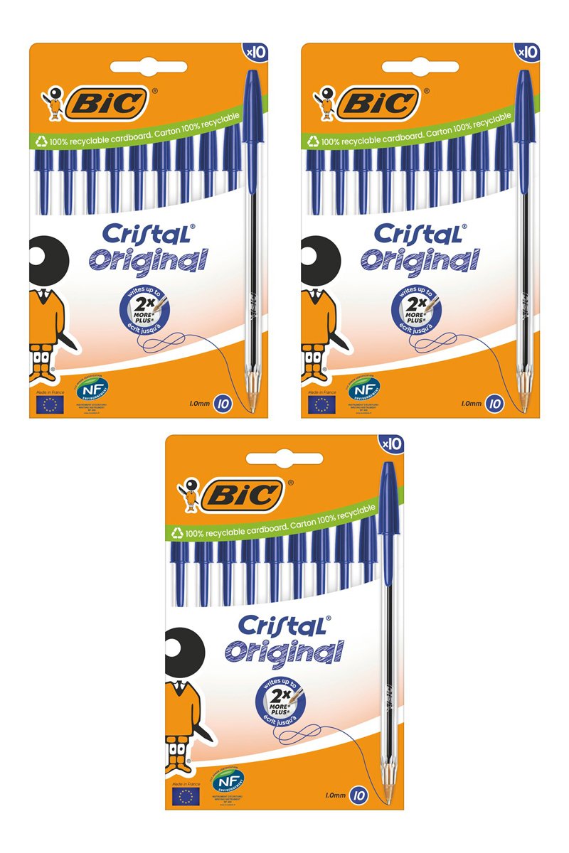 3 x 10 stylos-bille Cristal Original - Encre bleue