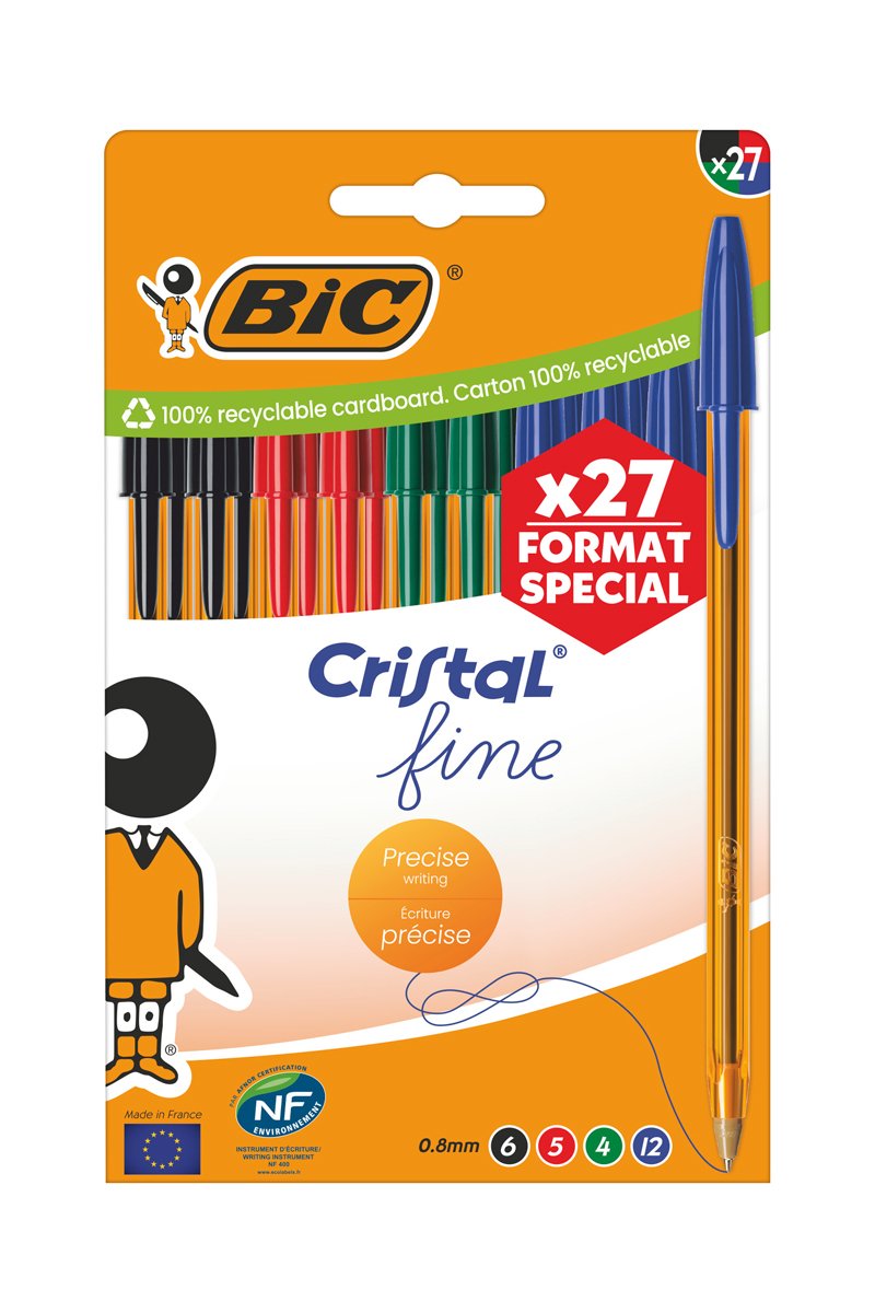 2 x 27 stylos-bille Cristal Fine - 4 encres