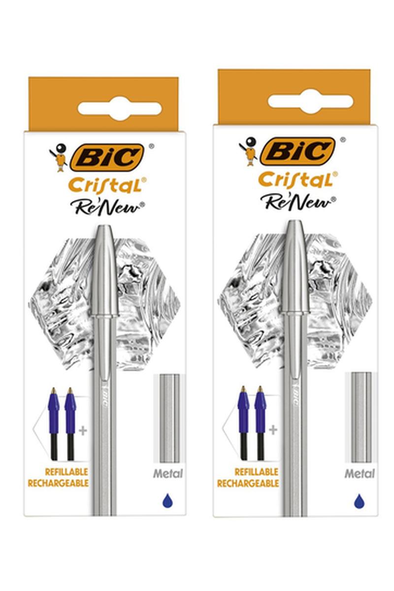 2 x Stylo-bille Cristal Re’New avec 2 recharges - Encre bleue