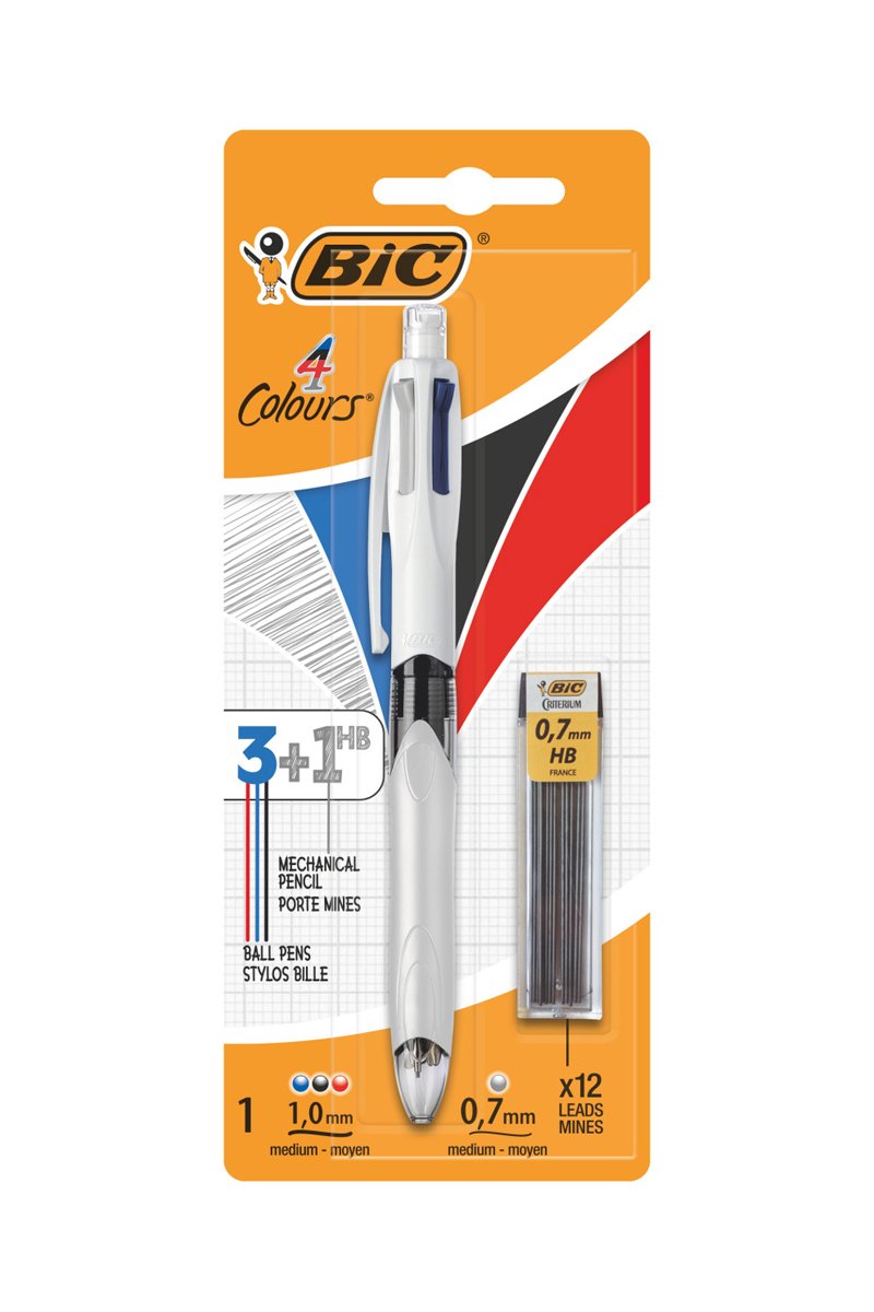 2 x BIC 4 Couleurs 3+1 HB Stylo-Bille et Porte-Mines - Blister de 1 + 12 Mines 0,7 mm HB
