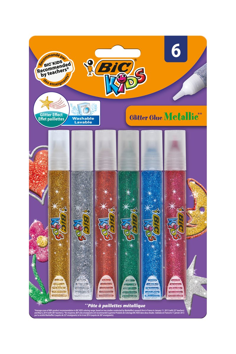 2 x BIC Kids Colle à Paillettes - Couleurs Métallisées Assorties, Blister de 6