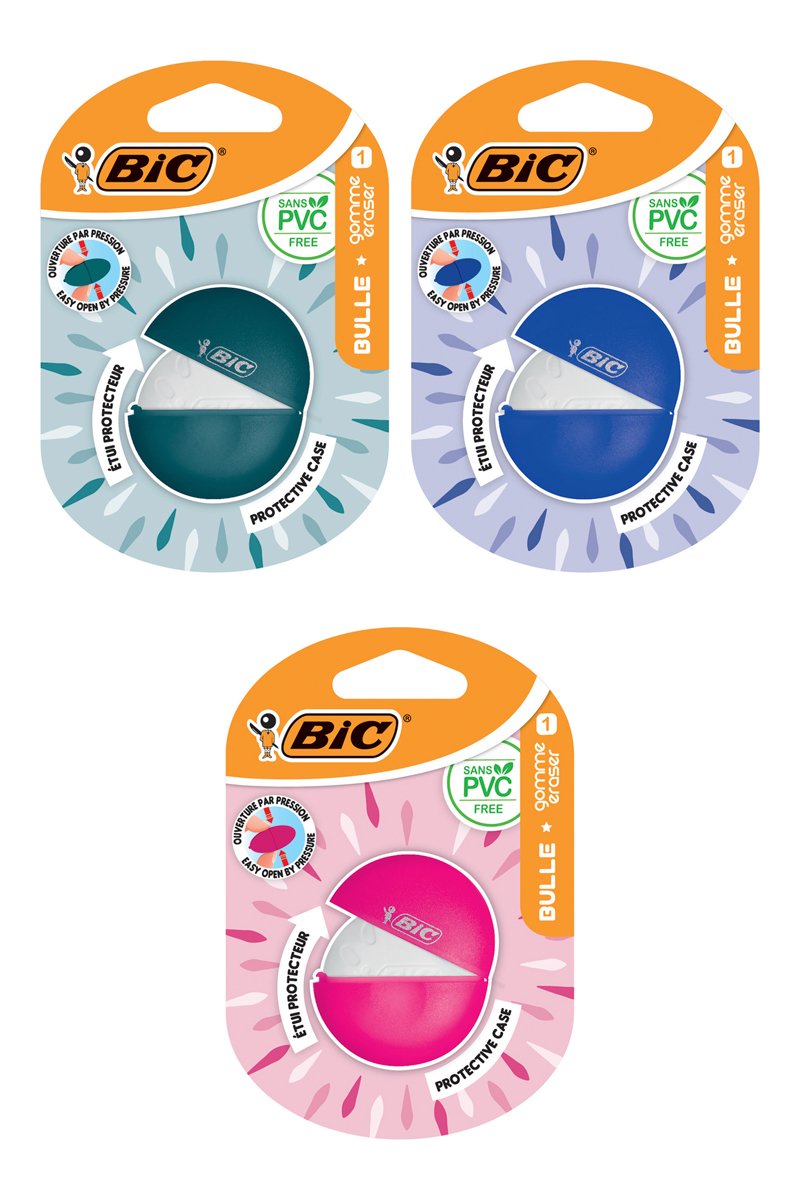 3 x BIC Bulle Gomme Blanche avec Etui Protecteur - Coloris aléatoire