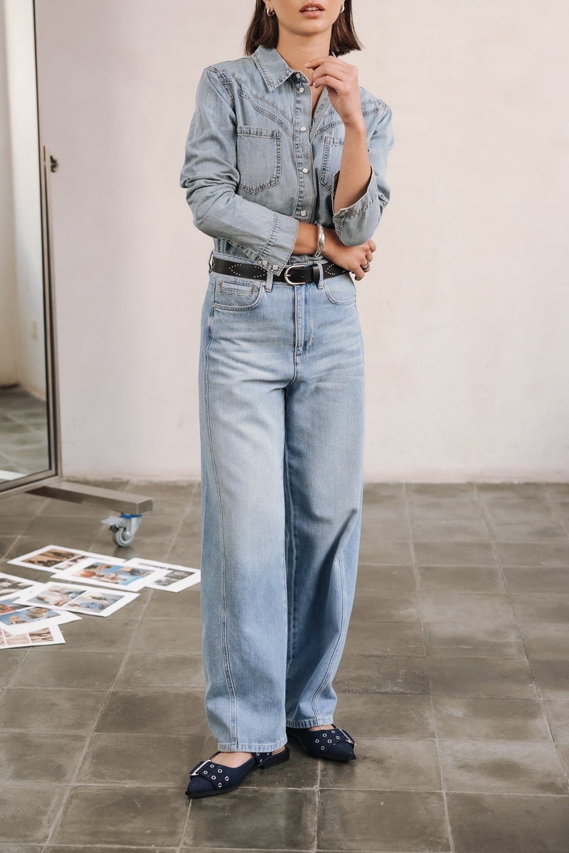 Le mannequin mesure 175 cm et porte une taille 27/S.