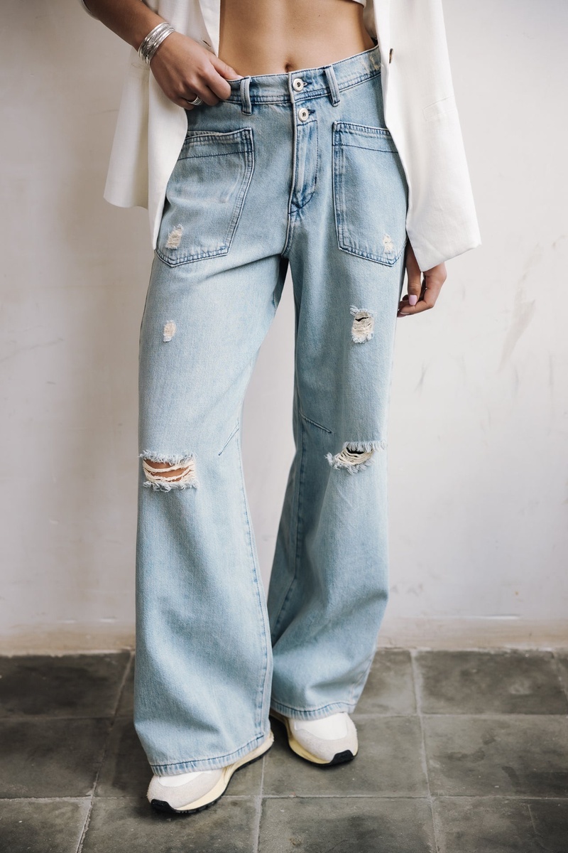 Le mannequin mesure 175 cm et porte une taille 27/S.