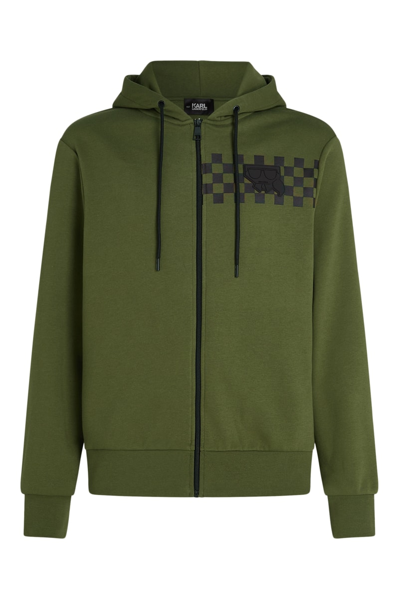 Motifs damier et logo devant.
