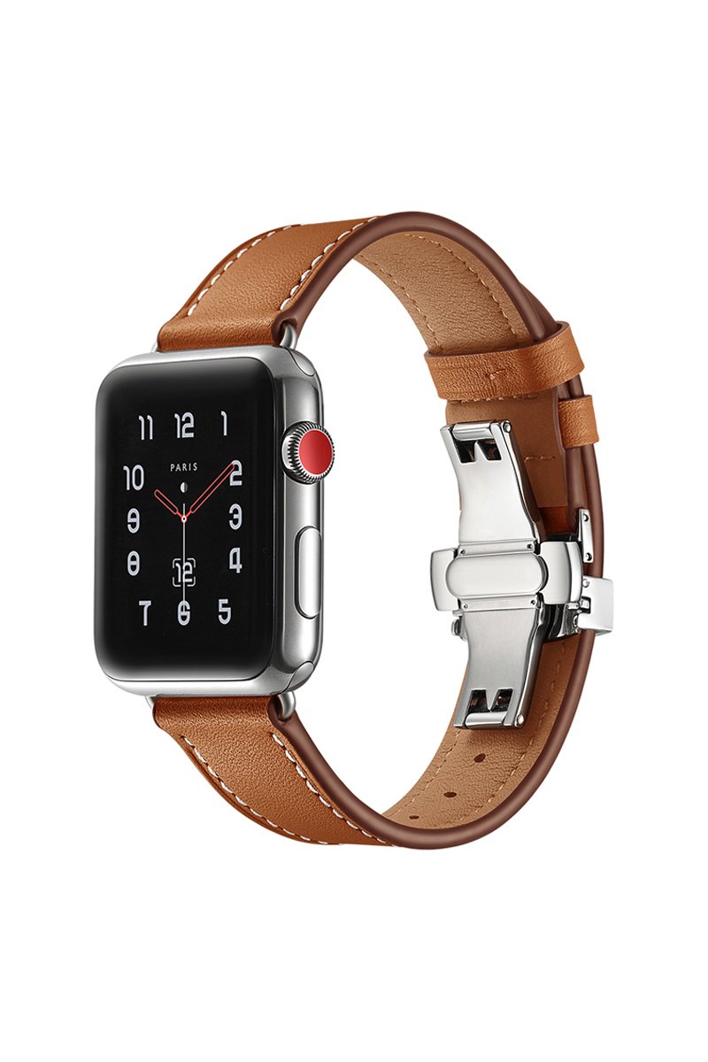Personnalisez votre Apple Watch avec ce bracelet haut de gamme en cuir véritable de vachette. Associé à sa boucle déployante, il offre un confort d'utilisation sans faille.