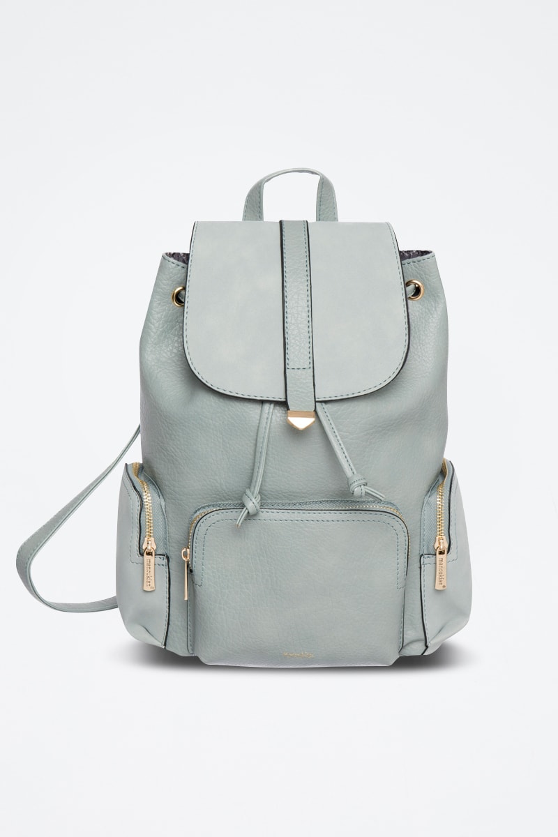 Poche zippée, patte avec empiècement et logo métalliques devant.