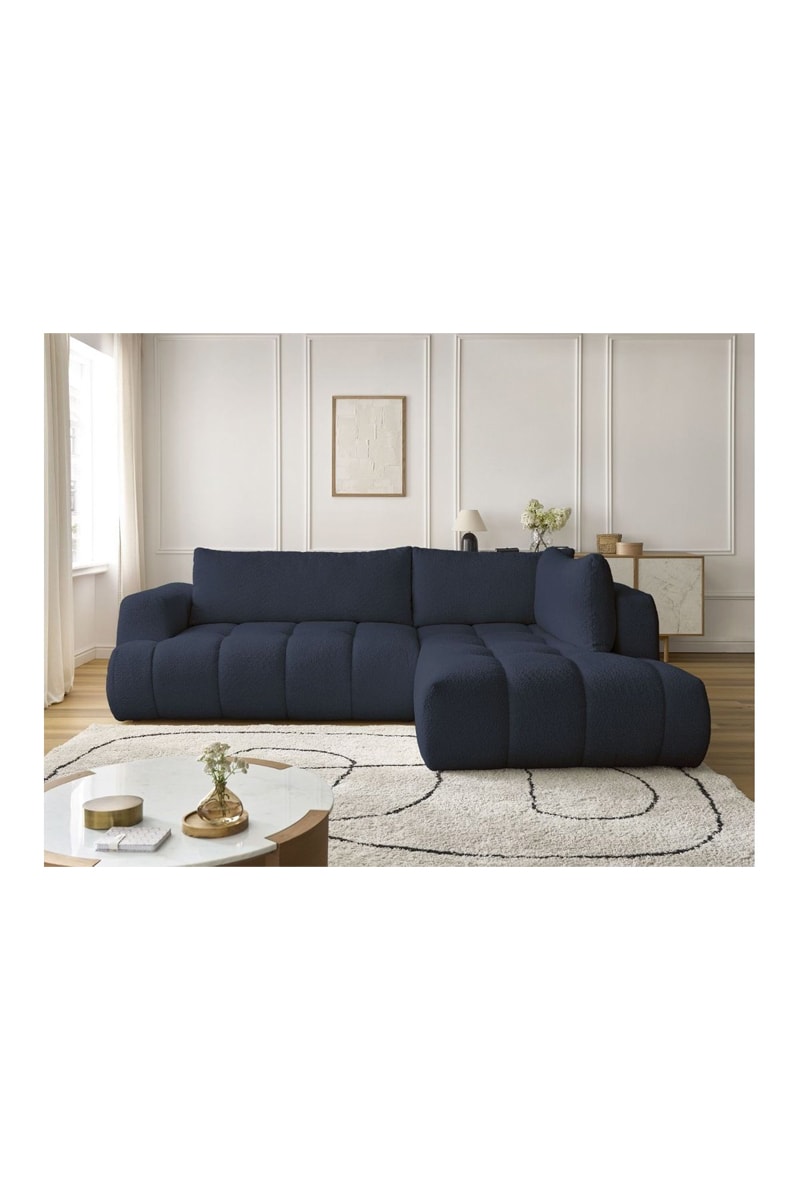 Canapé d'angle droit convertible Fuji - Bleu foncé - 4 places - En polyester - Couchage 228 x 154 cm