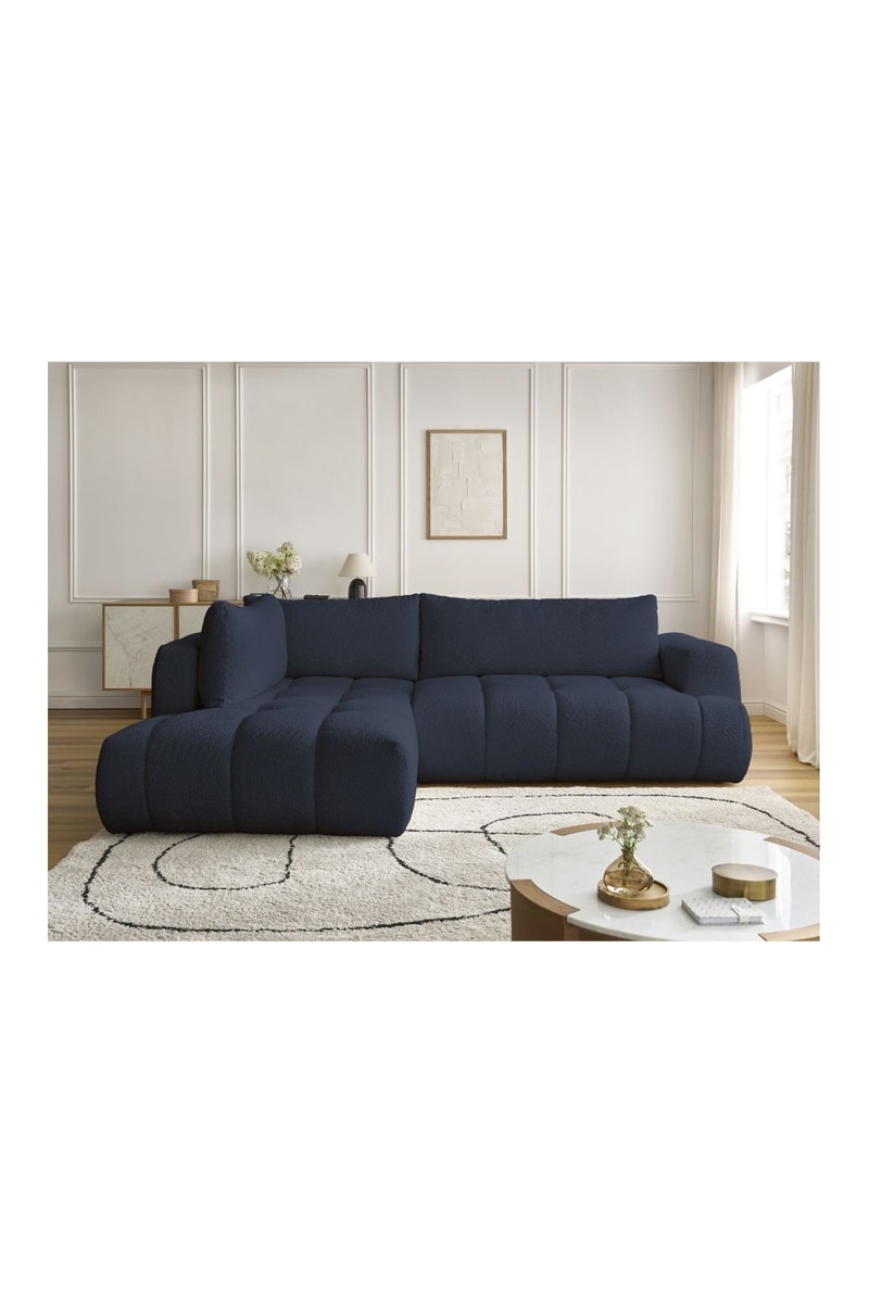 Canapé d'angle gauche convertible Fuji - Bleu foncé - 4 places - En polyester - Couchage 228 x 154 cm