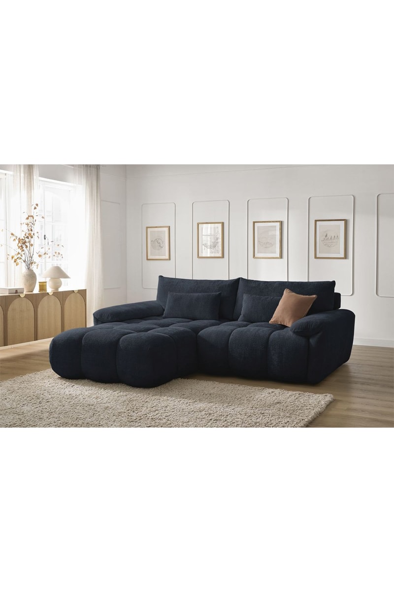 Canapé d'angle gauche Ivane - Bleu foncé - 3 places - En tissu texturé