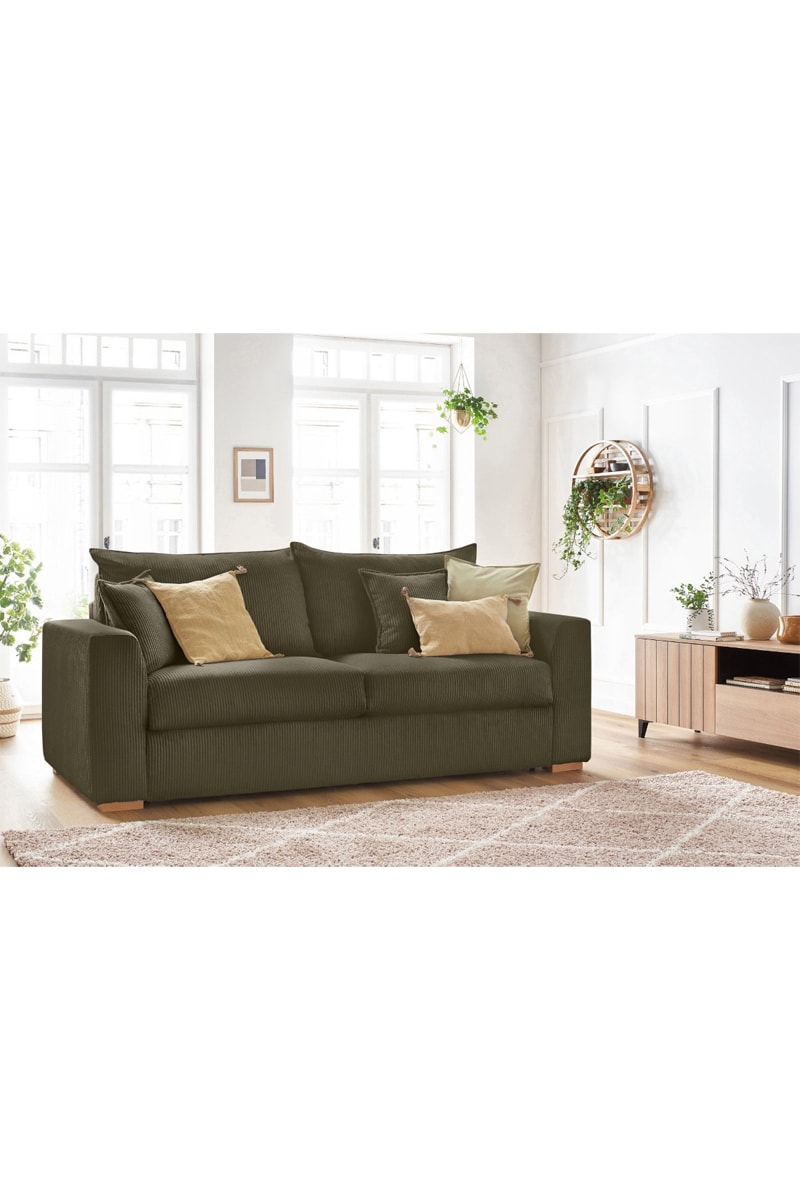 Canapé convertible Augustin - Kaki - 3 places - En tissu velours côtelé