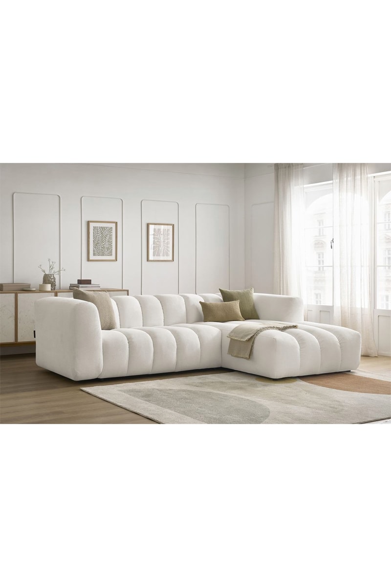 Canapé d’angle droit Talia - Blanc - 3 places - En tissu chiné
