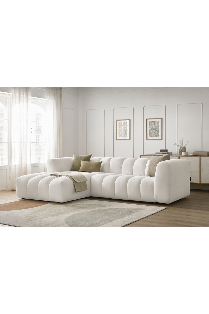 Canapé d’angle gauche Talia - Blanc - 3 places - En tissu chiné