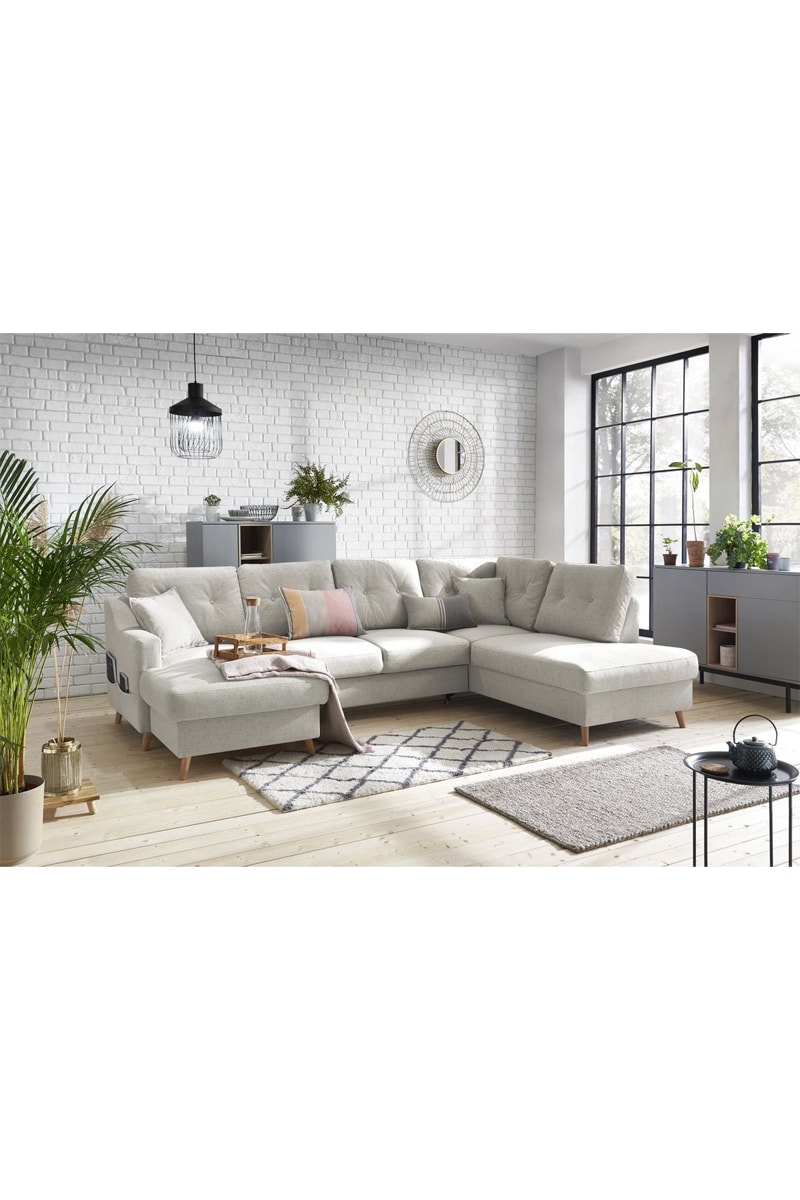 Canapé d'angle panoramique convertible gauche Sweden - Crème - Couchage 260 x 130 cm