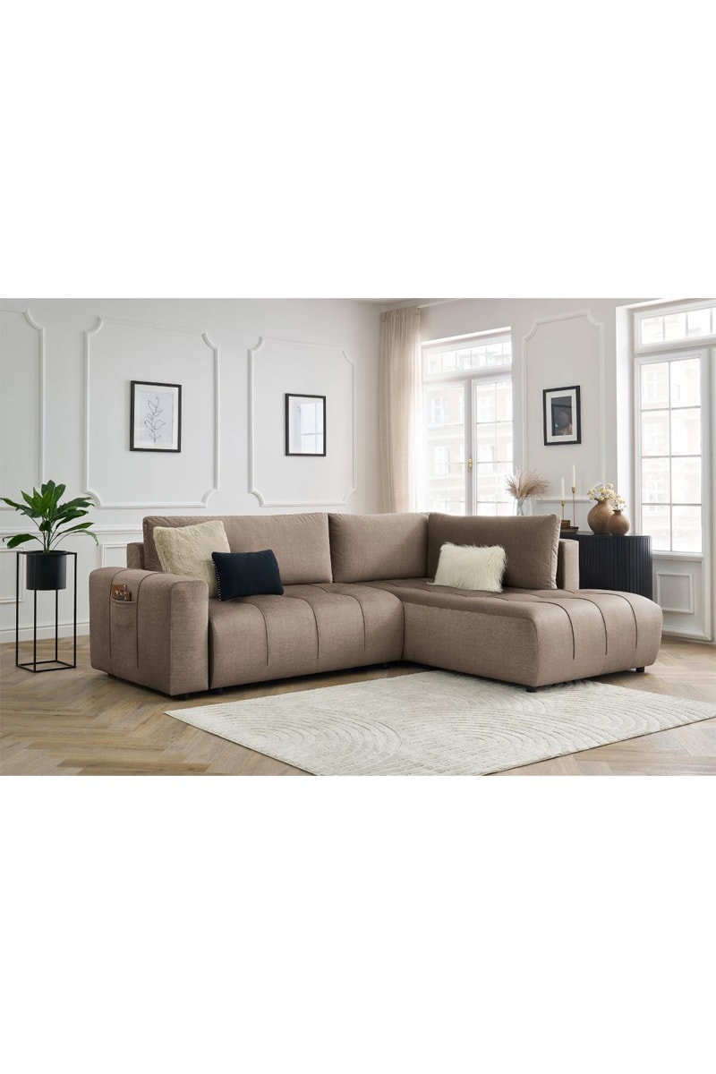 Canapé d'angle droit convertible Arsene - Taupe - Couchage 135 x 204 cm