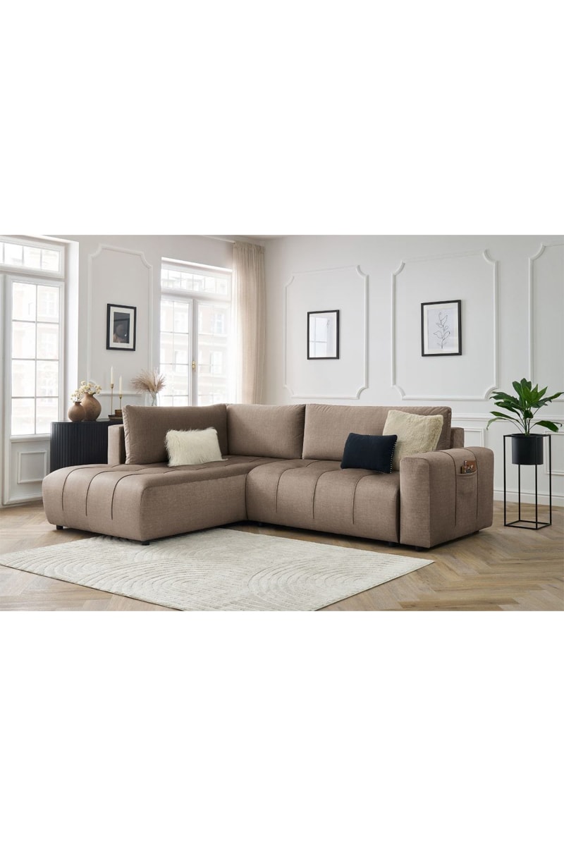 Canapé d'angle gauche convertible Arsene - Taupe - Couchage 135 x 204 cm