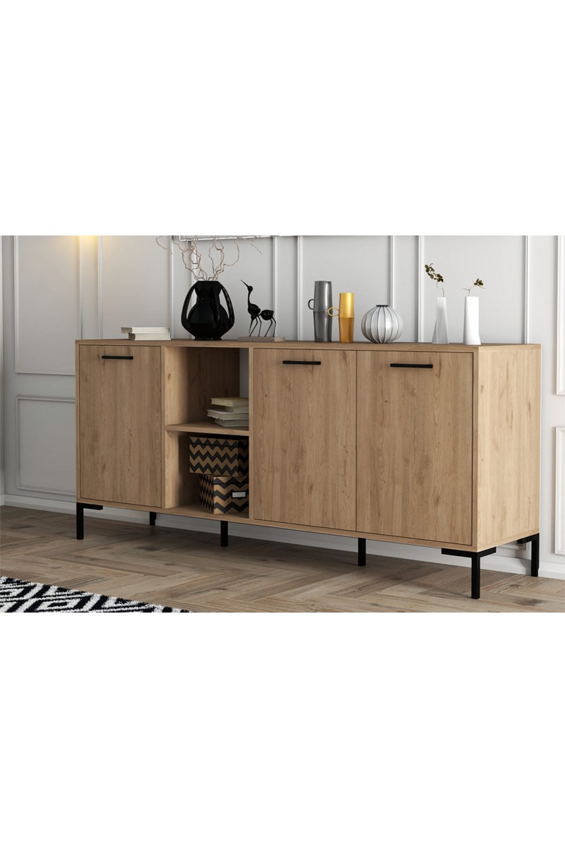 Buffet 3 portes - Imitation bois - 180 x 80 x 45 cm