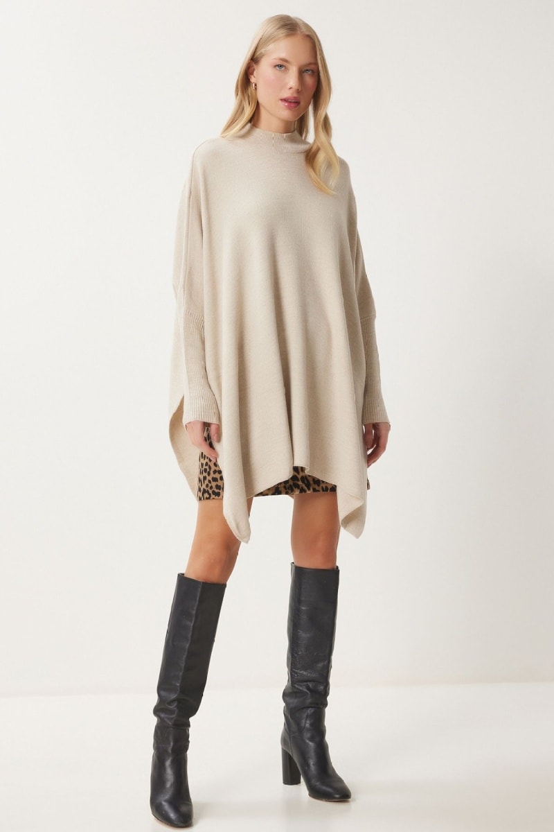Poncho en laine mélangée à manches longues.