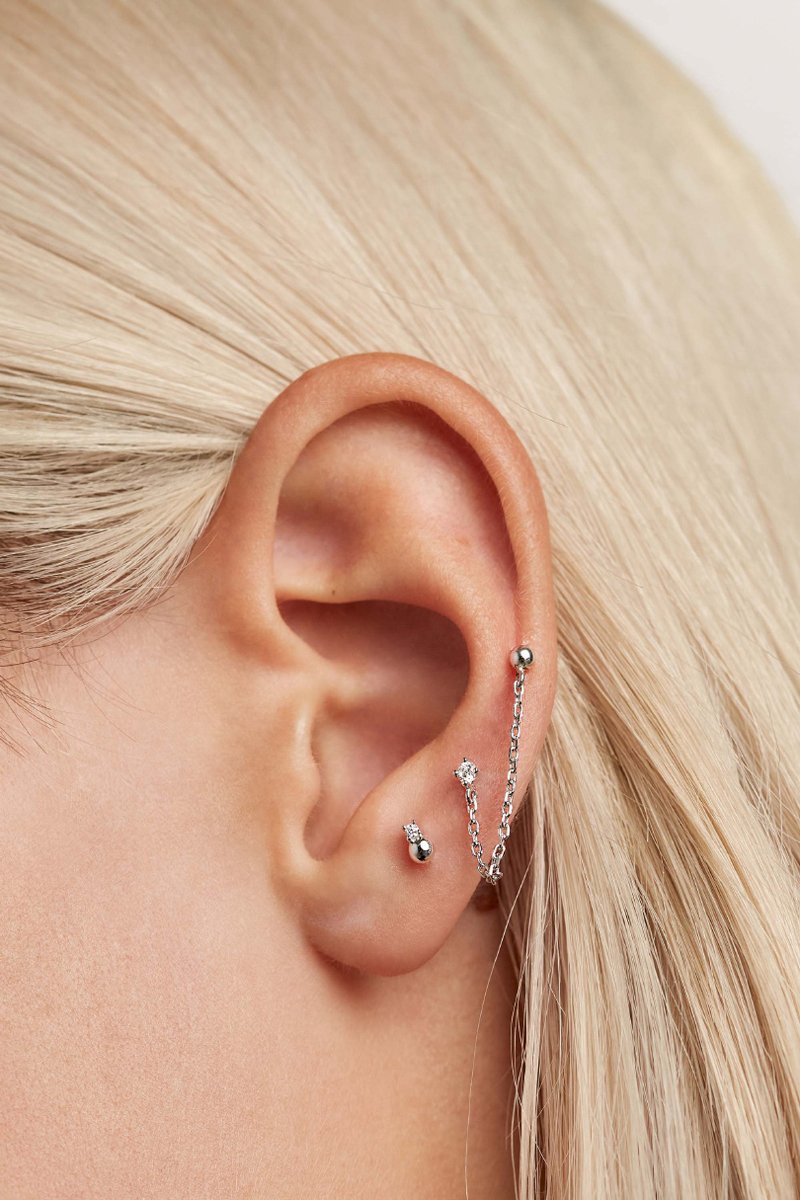 3 earcuffs en argent dont 2 reliées par chaînette.