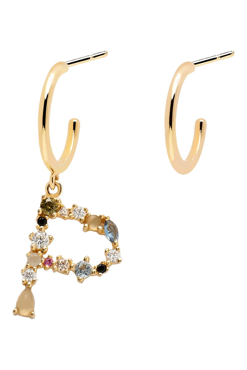 Boucle d'oreille Letter P Earrings 2019 Letters - Argent plaqué or jaune, labradorite, aigue-marine, zircons, spinelle et péridot