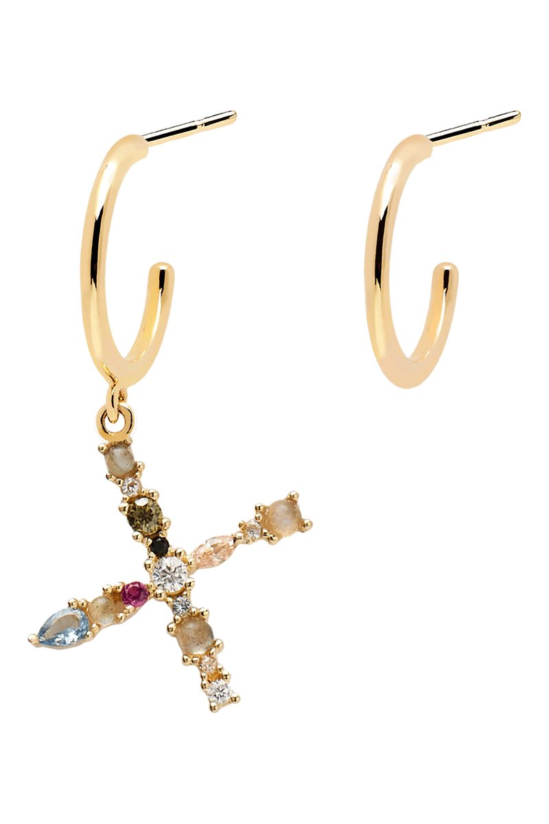 Boucle d'oreille Letter X Earrings 2019 Letters - Argent plaqué or jaune, labradorite, aigue-marine, zircons, spinelle et péridot