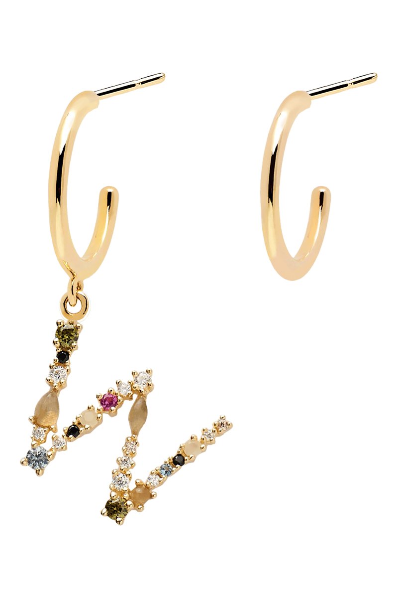 Boucle d'oreille Letter W Earrings 2019 Letters - Argent plaqué or jaune, labradorite, aigue-marine, zircons, spinelle et péridot