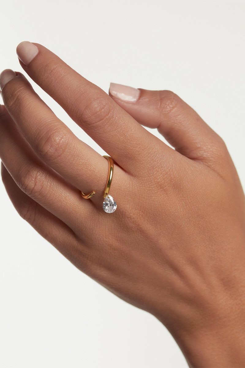 Bague réglable en en argent plaqué or jaune sertie de zircon.