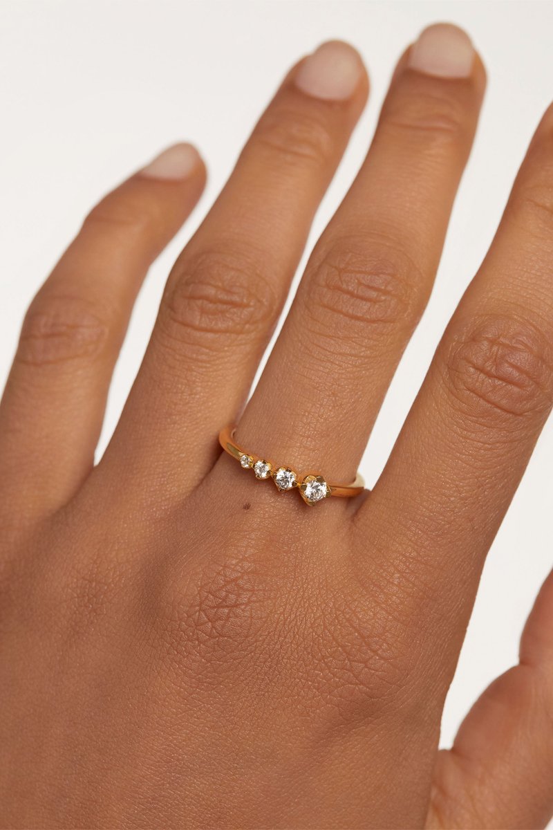 Bague en argent plaqué or jaune sertie de 4 zircons.
