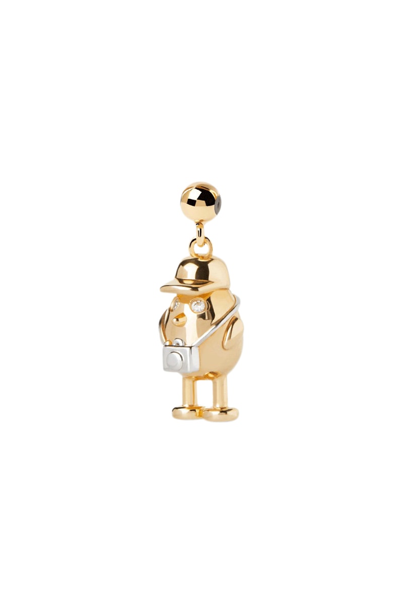 Charm en argent plaqué or jaune serti de 2 zircones cubiques.