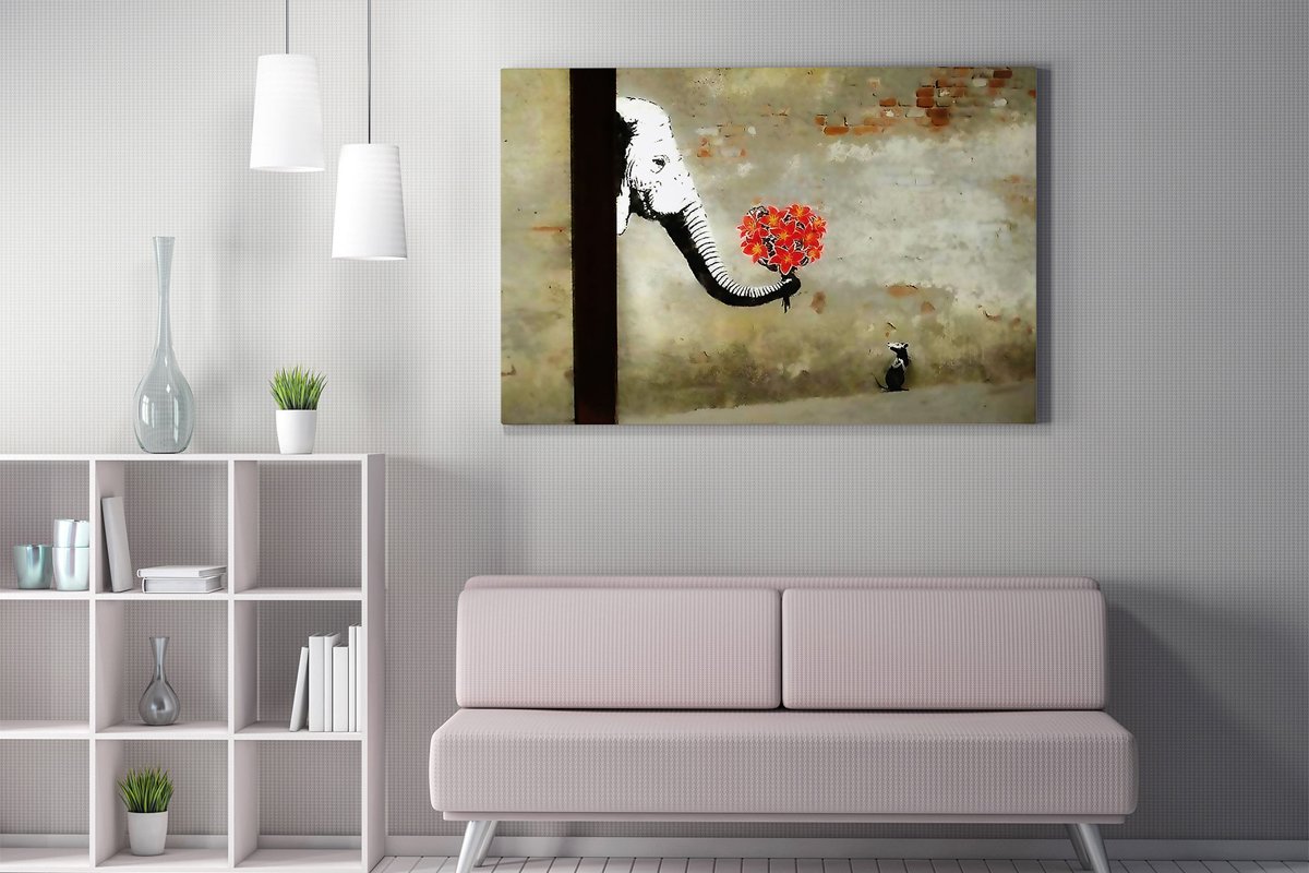 Tableau "L'Eléphant au bouquet de fleurs" - Banksy - 50 x 70 cm - Reproduction