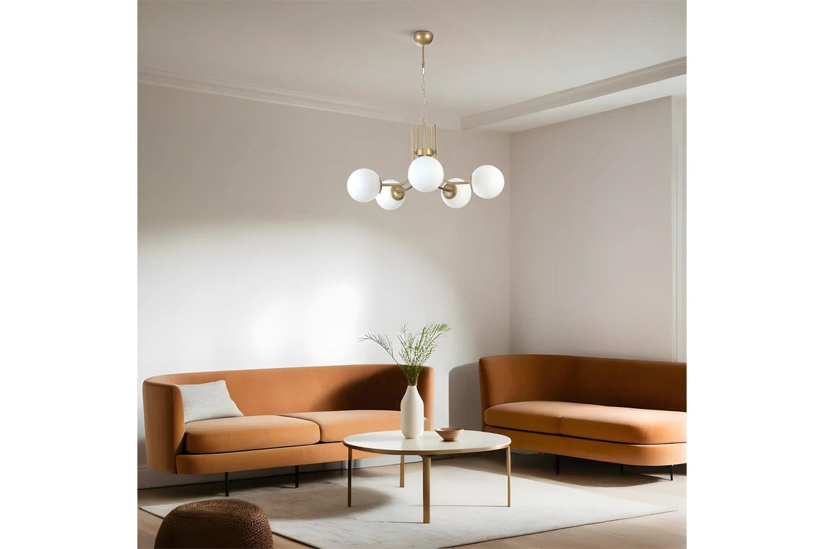 Suspension - Doré et blanc - 5 x 40 W