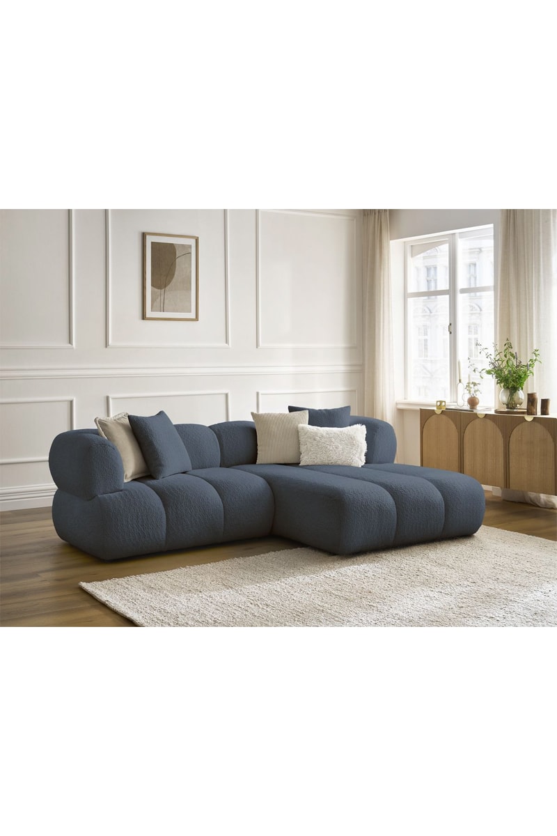Canapé d'angle droit Pamira - Bleu foncé - 4 places - En tissu bouclette