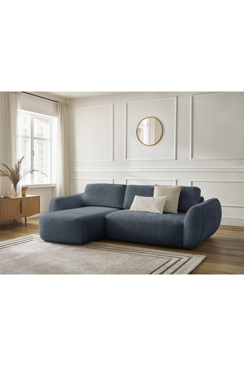 Canapé d'angle gauche convertible Denise - Bleu foncé - 3 places - En polyester - Couchage 202 x 132 cm
