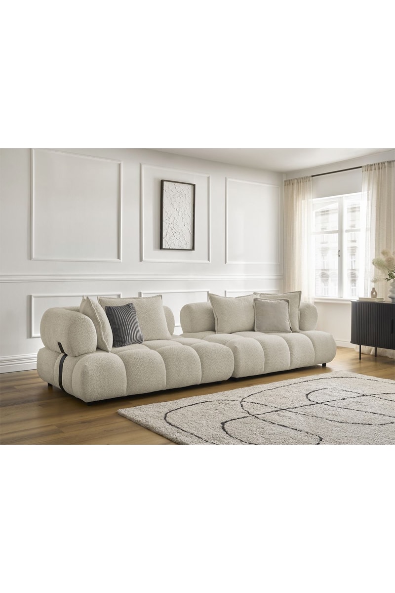Canapé Alya - Beige - 4 places - En tissu bouclette