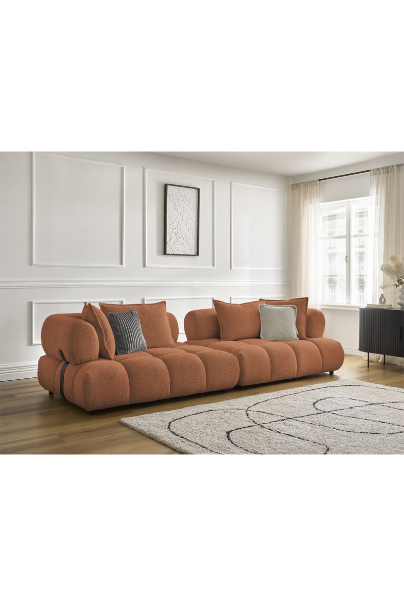 Canapé Alya - Orange - 4 places - En tissu bouclette