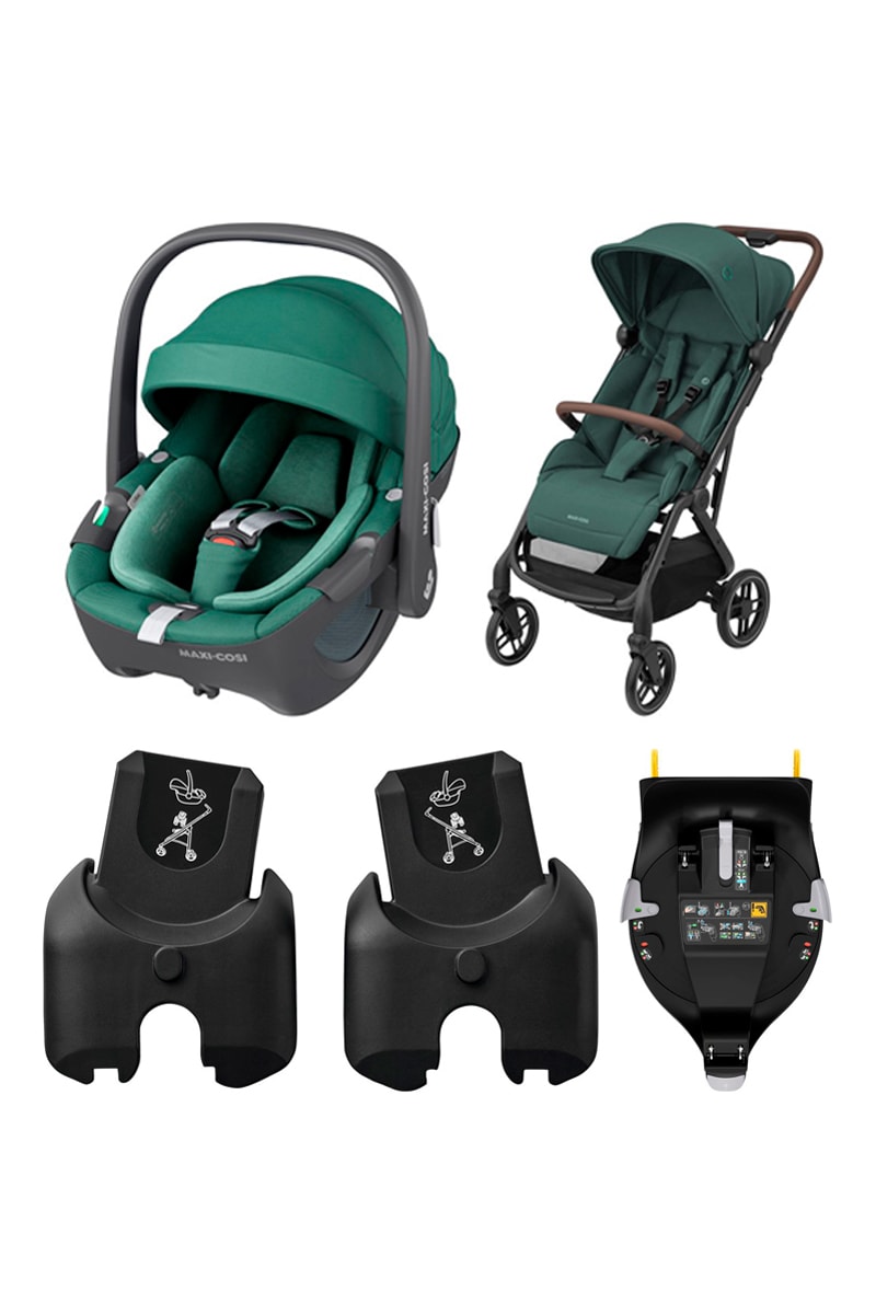 Poussette pliable Soho, Siège-auto Pebble 360, Base siège-auto FamilyFix 360 et Adaptateur pour nacelle