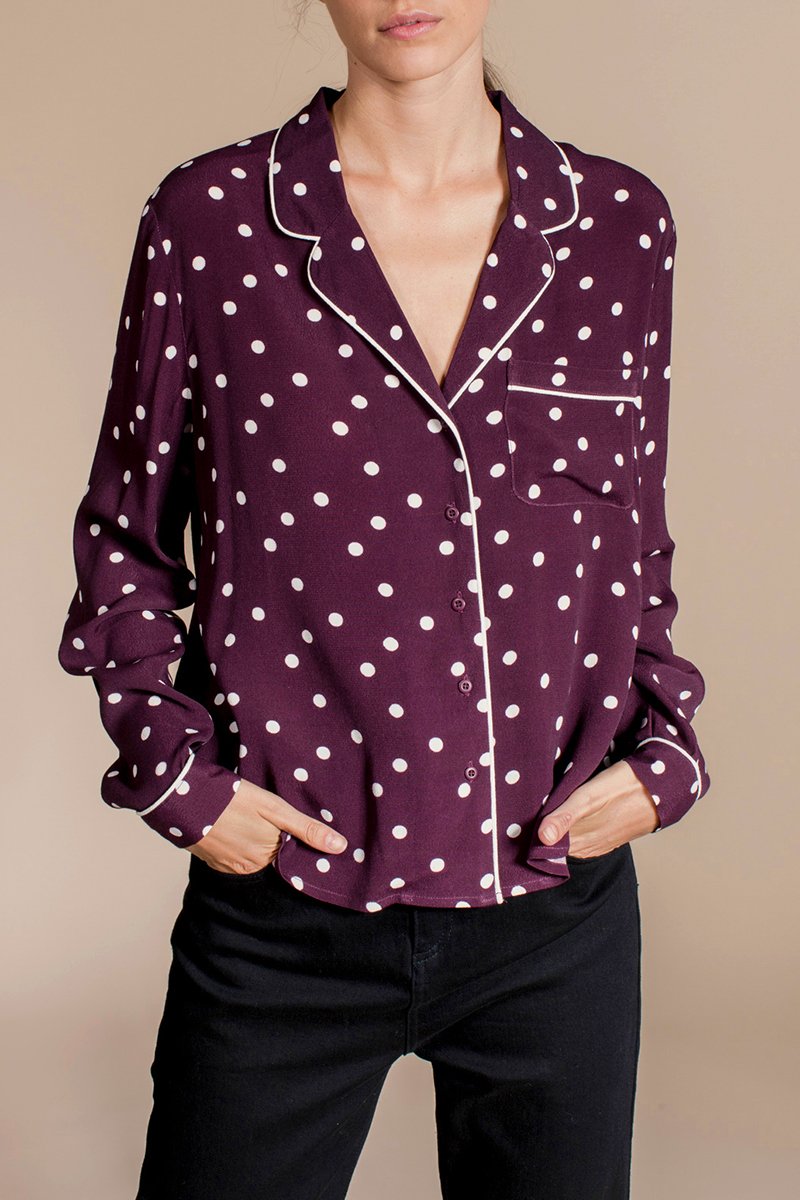 Liserés contrastants à l’encolure, sur les manches, devant et sur la poche.