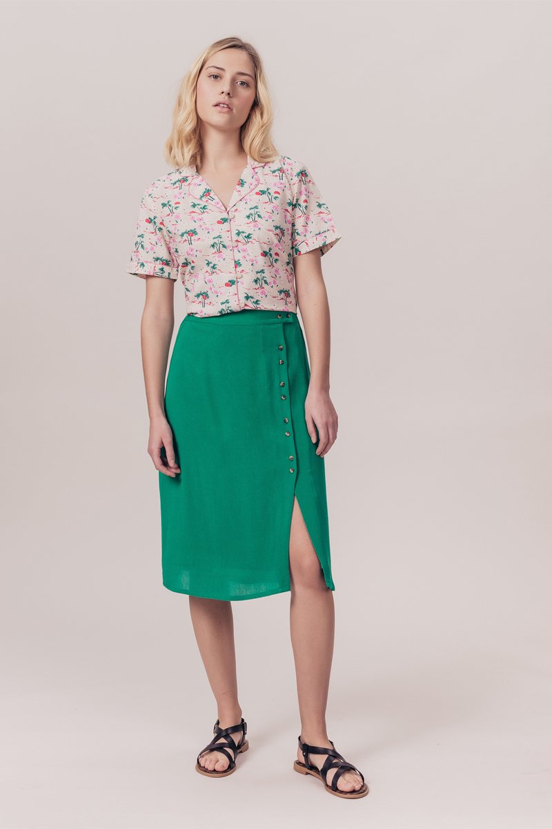Jupe midi taille haute Jojoba - Vert