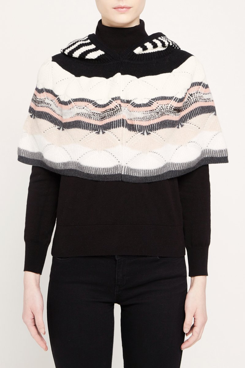 Poncho en laine et mohair - Ecru et noir
