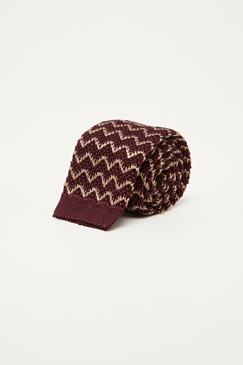 Cravate en soie - Bordeaux et crème