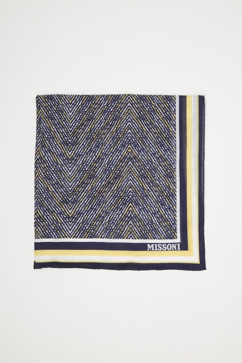 Connue pour sa maille et ses rayures chamarrées, la marque italienne Missoni égaie vos looks grâce à ses foulards, cravates et écharpes aux couleurs et motifs éclatants !