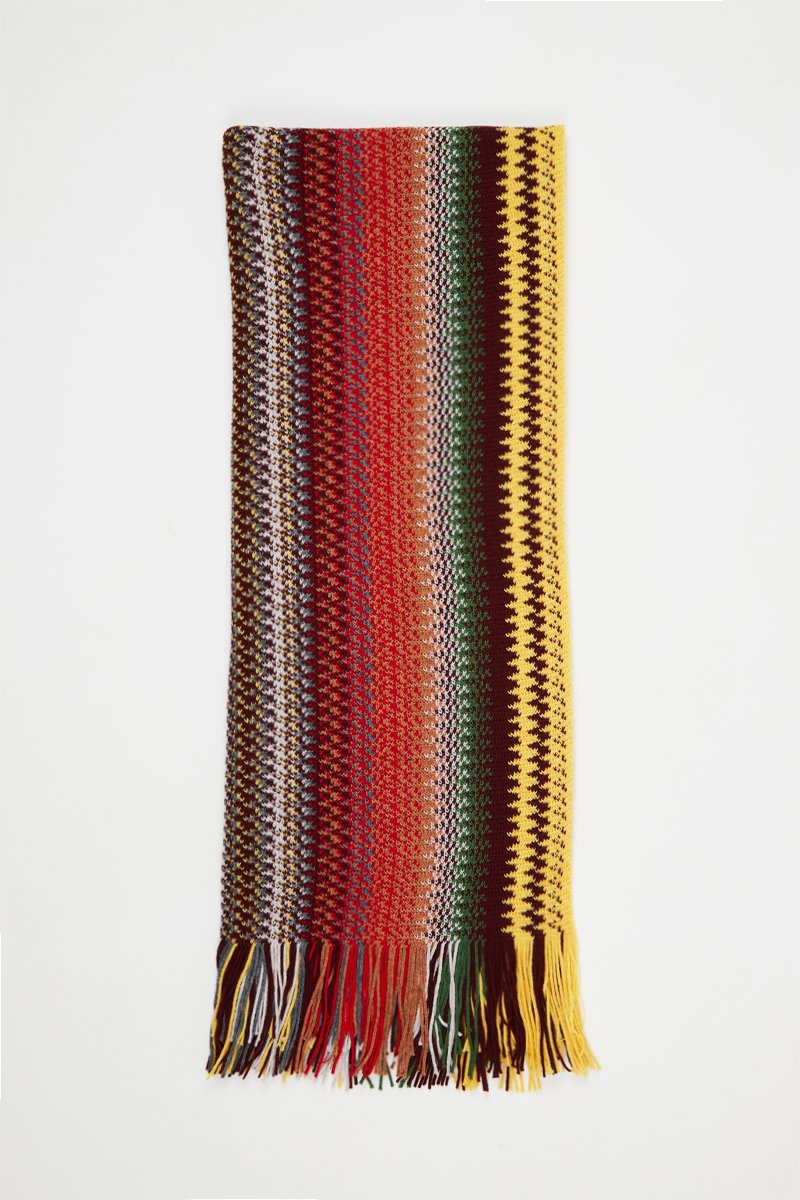Connue pour sa maille et ses rayures chamarrées, la marque italienne Missoni égaie vos looks grâce à ses foulards, cravates et écharpes aux couleurs et motifs éclatants !