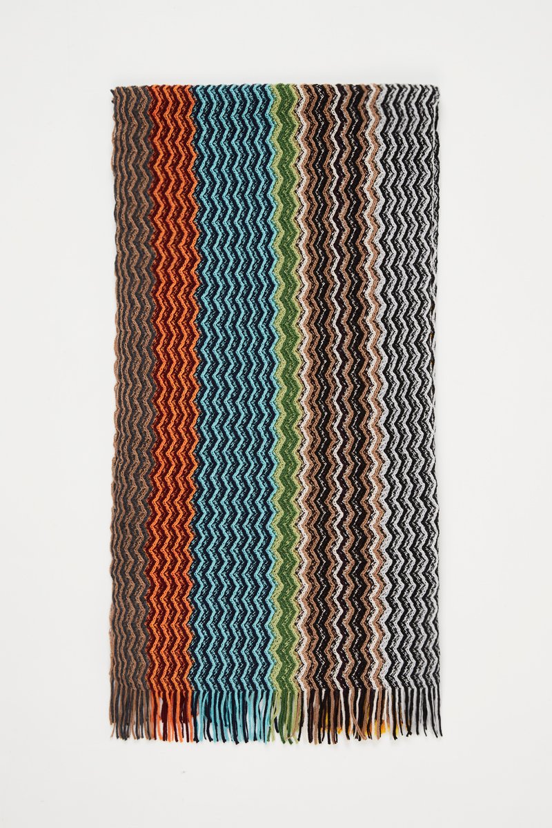Connue pour sa maille et ses rayures chamarrées, la marque italienne Missoni égaie vos looks grâce à ses foulards, cravates et écharpes aux couleurs et motifs éclatants !