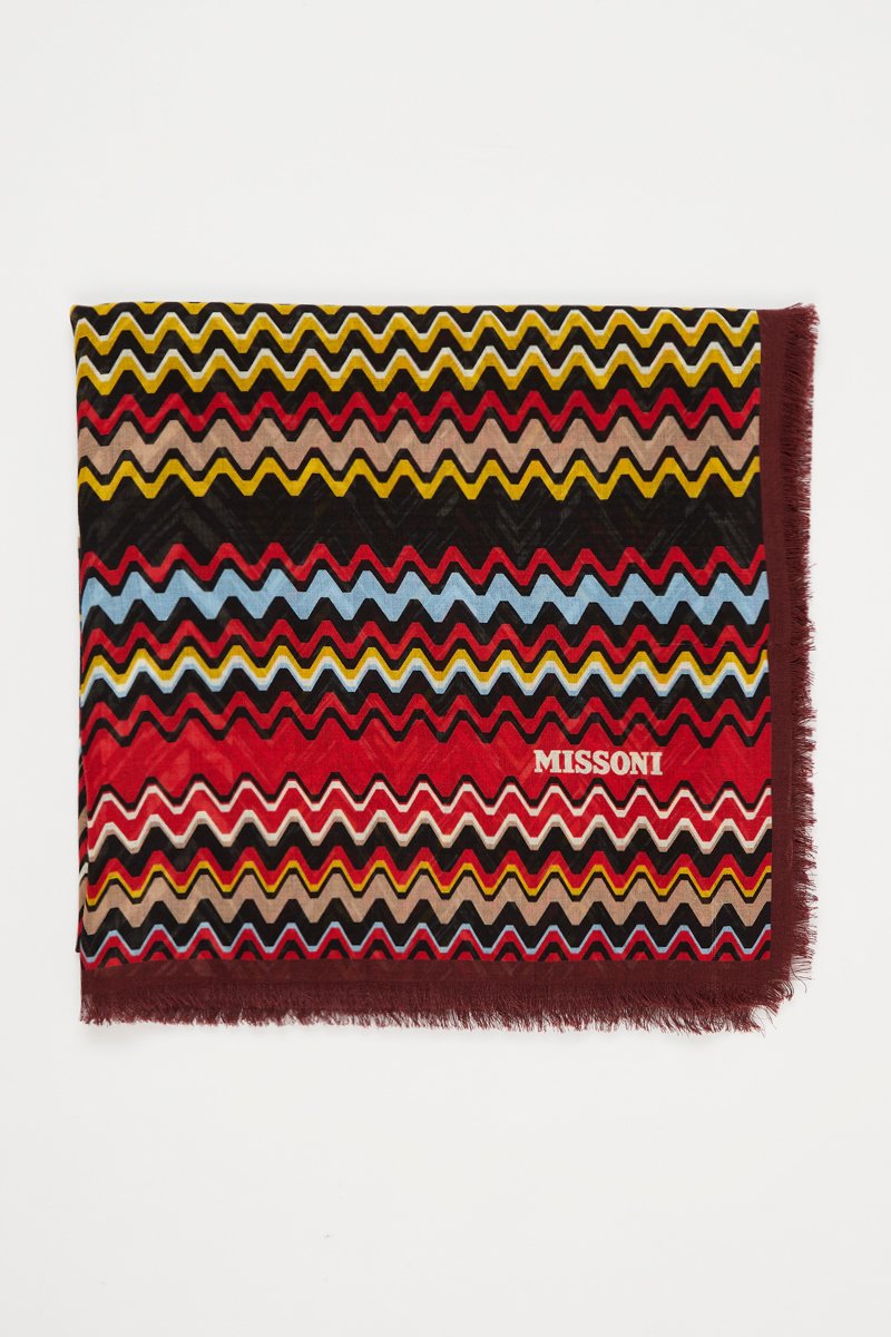 Connue pour sa maille et ses rayures chamarrées, la marque italienne Missoni égaie vos looks grâce à ses foulards, cravates et écharpes aux couleurs et motifs éclatants !